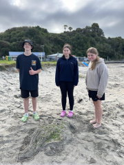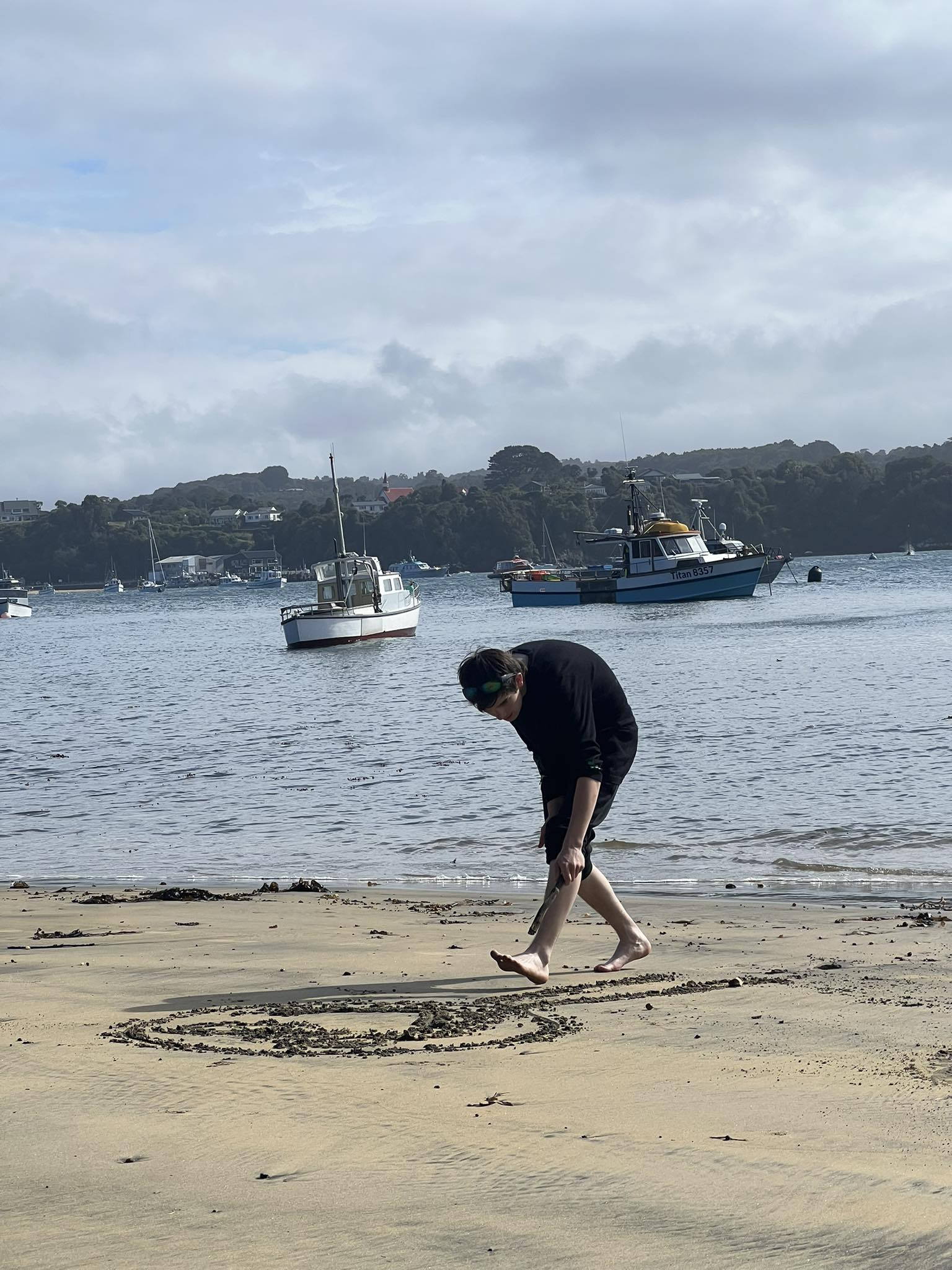 After refuelling, we set off for another bay sheltered from the wind, where students faced off in the ultimate sand sculpture challenge. This was followed by 'seaweed'on the beach. The day wrapped up with more fishing off the wharf and riding the waves through body surfing.