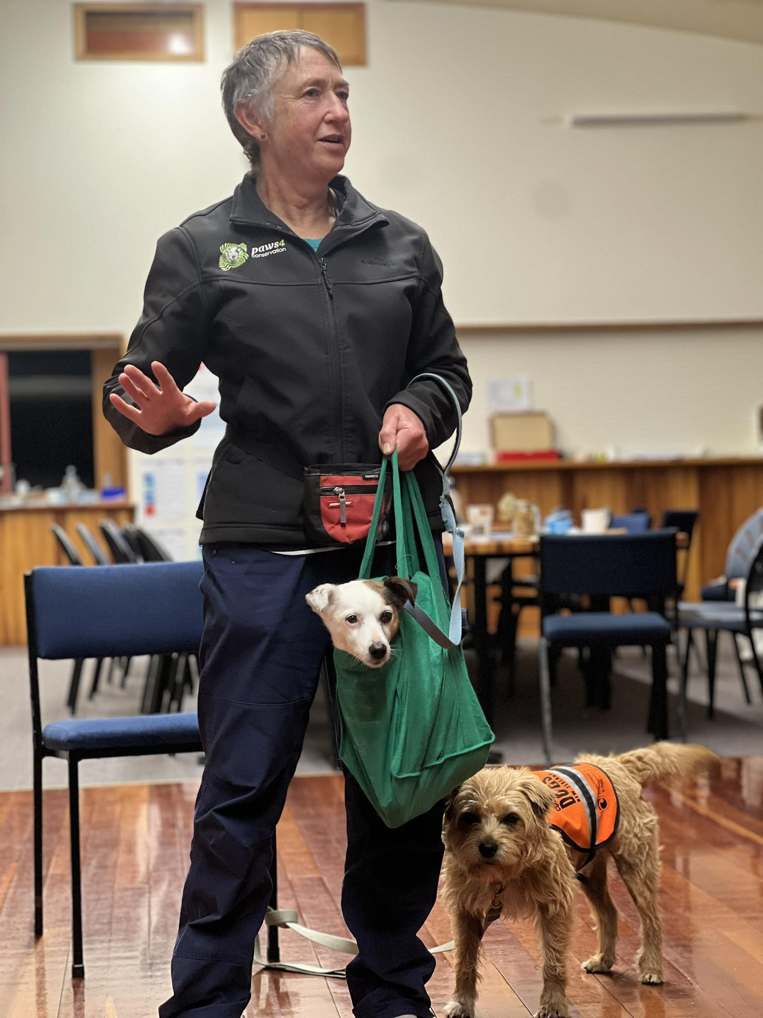 The evening brought a session with local celebrities from 'Paws for Conservation.' Sandy and her trained dogs, Gadget and Mawson, demonstrated their impressive rodent detection skills and shared their love and dedication to protecting New Zealand's ecosystems. It was exciting to watch the dogs detect a mouse that was planted in the hall!