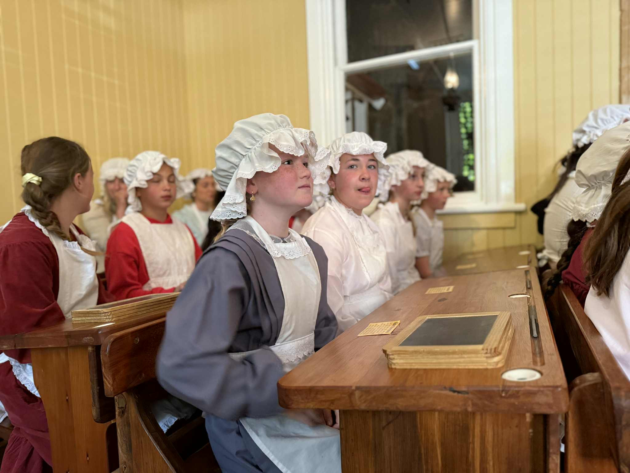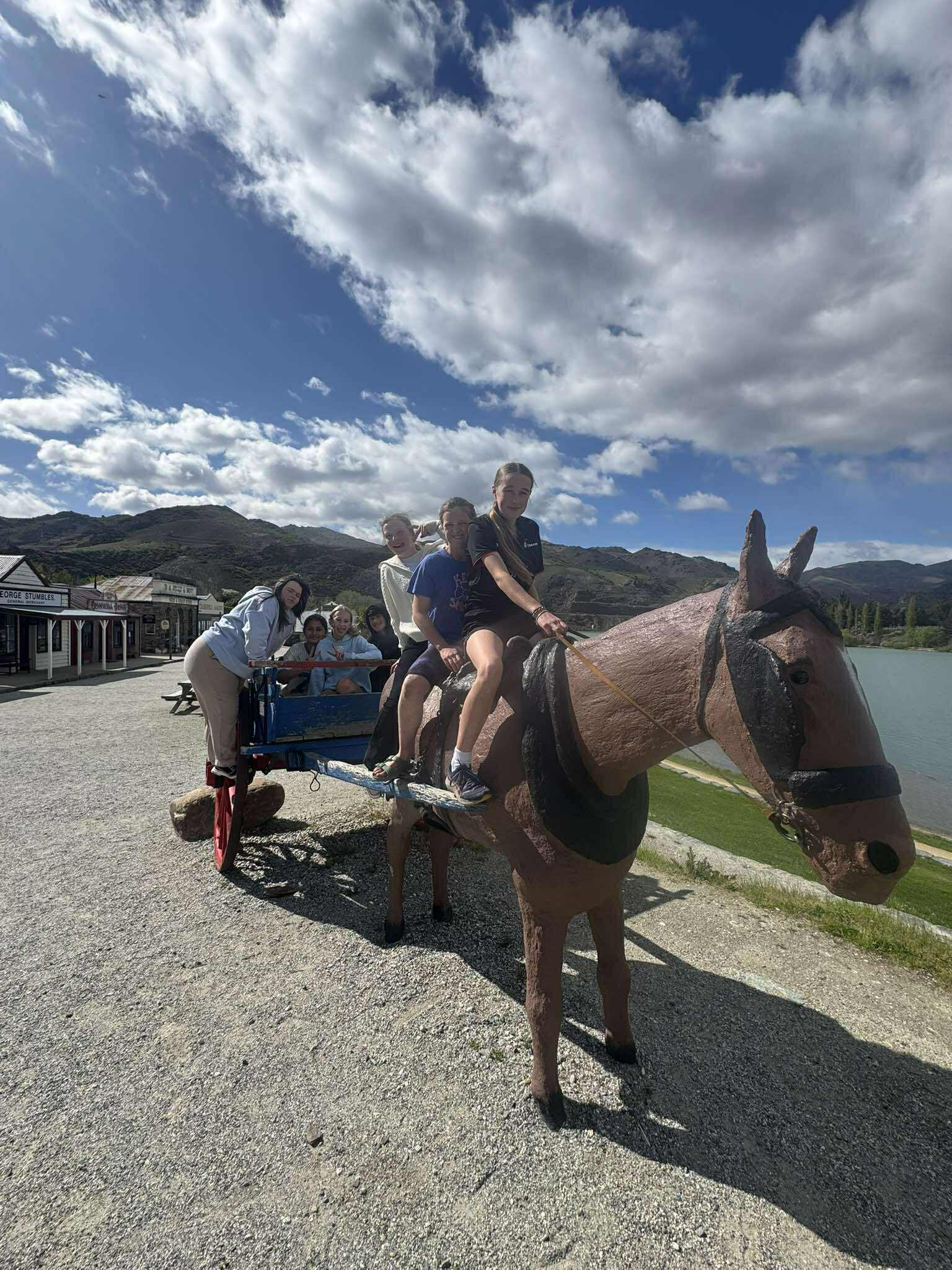 Day two was full of travel and time travel literally! At Arrowtown’s Museum, students were transported back to the 1800s, complete with strict teacher Miss Grey, fancy costumes, and plenty of “Yes, Miss Grey” choruses. Haircuts were inspected, fingernails checked, and good manners enforced and suddenly, Mrs Bichan was everyone’s favourite teacher. The old classroom experience came complete with prayers, times tables, and one naughty student even getting “the cane” (with parental permission, don’t worry!).
