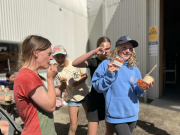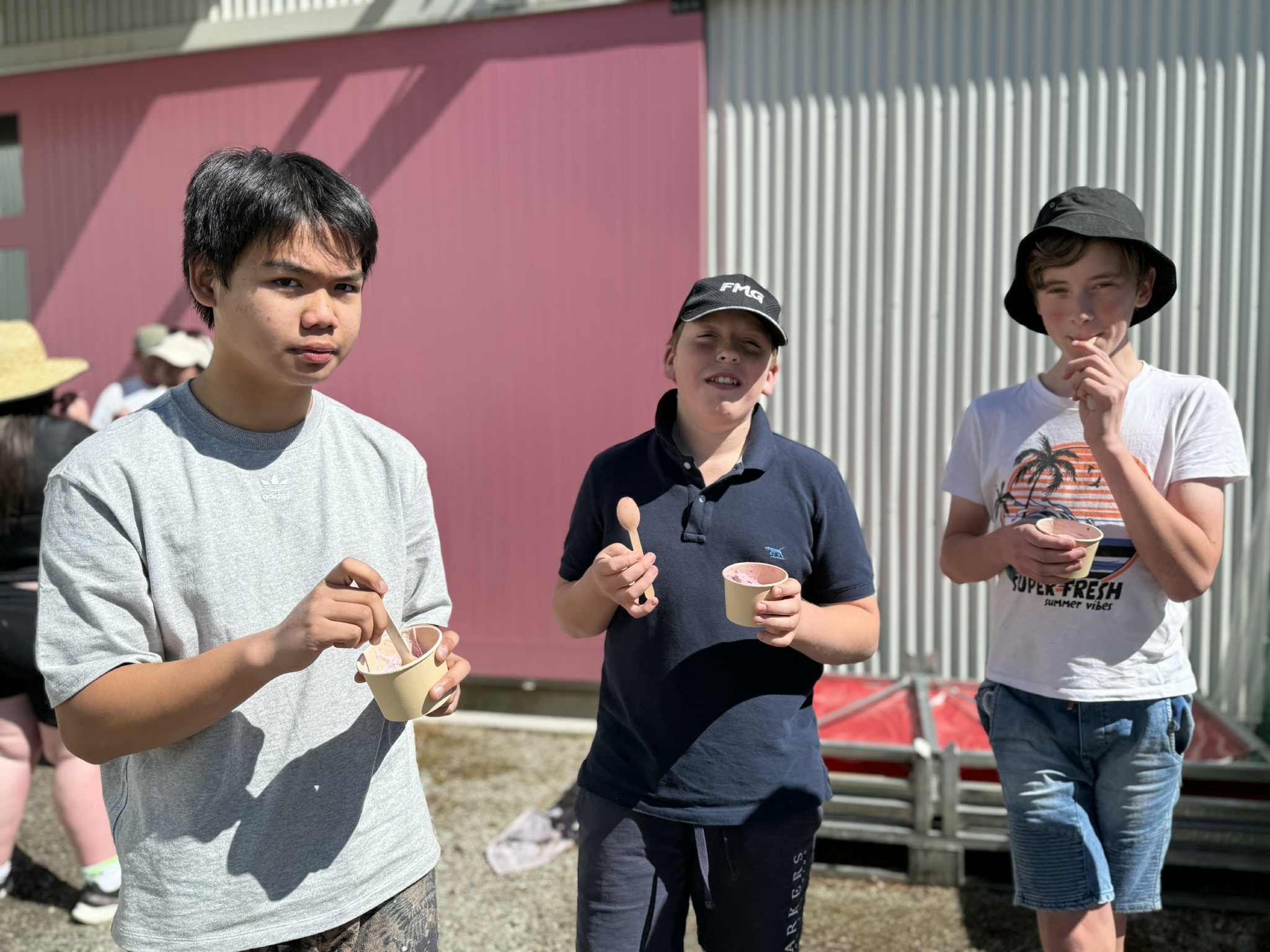 First stop: Jackson’s Orchard, where students hopped aboard buggies that zoomed (and occasionally crawled at snails pace) around the farm’s fruit trees. We learnt how asparagus grows (apparently in fountains), how Kevin endlessly mows lawns, and that there are more varieties of fruit than anyone could ever name. A few students found themselves literally rolling down the hills not in the buggies, thankfully and ended up a little grassy but still grinning. The tour wrapped up with real fruit ice creams, where some may or may not have consumed their body weight in ice-cream.