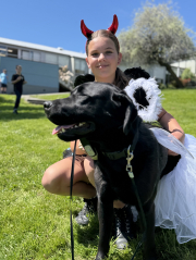 Costume time was a real highlight. Owners and pets rocked up as Santa's little helpers, angels, devils, and even a tiny Miss Muffet popped in for a cuppa and a web. The cake raffle stacked up some serious coin and those cakes were next-level impressive.